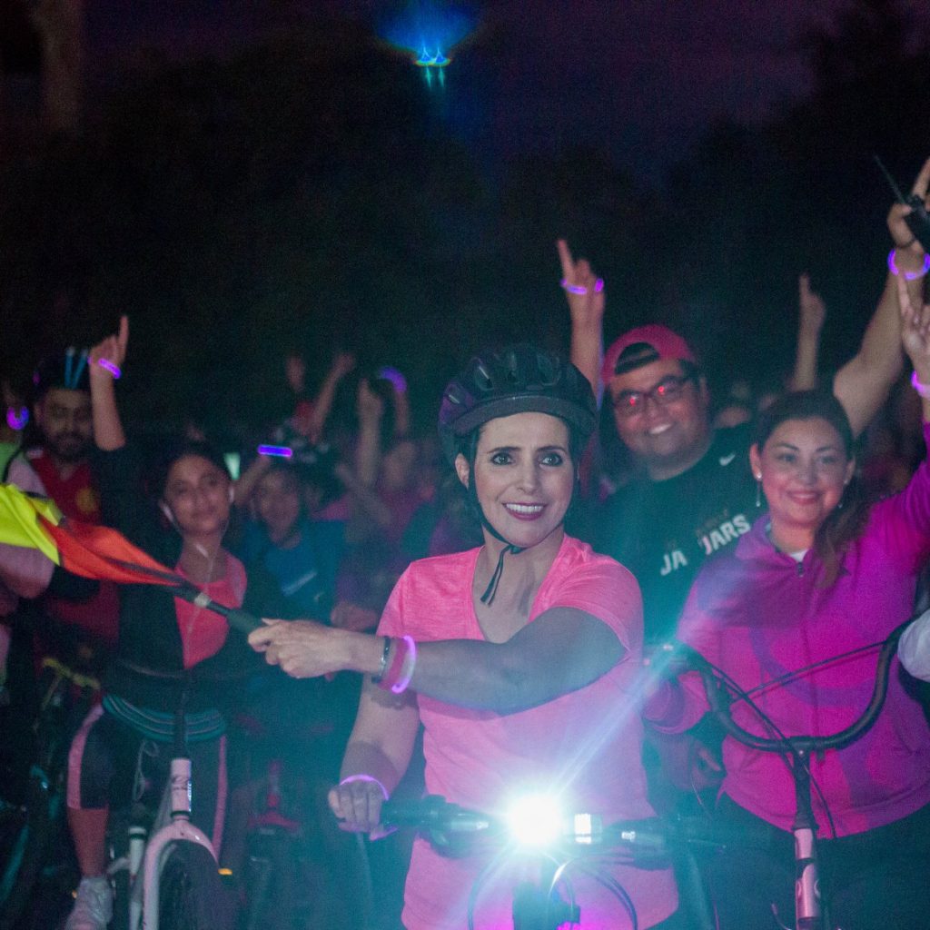 Ciudad Victoria, Tamaulipas, 20 de octubre 2019.- Con una entusiasta participación de cientos de ciclistas, el DIF Victoria, que preside la señora Arcelia Flores, dio el banderazo de salida a “La Rodada Rosa”, que se llevó a cabo la tarde – noche de este miércoles, en el marco del “Día Mundial de la Lucha Contra el Cáncer de Mama”, en la que participaron personal de nuestra institución, del Gobierno Municipal de Victoria y de la ciudadanía en general.