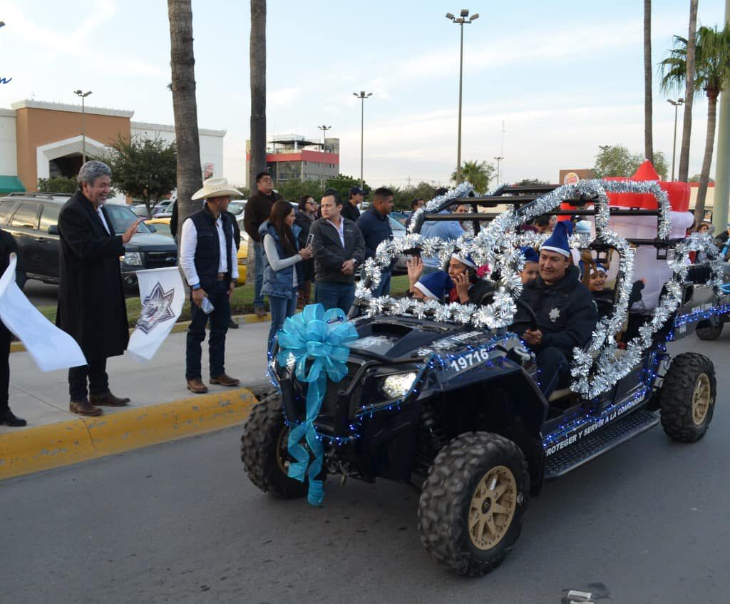 Ciudad Victoria, Tamaulipas, 20 de diciembre 2019.- Se realizó el tradicional Desfile Navideño 2019 “Juntos Somos Más Fuertes”, por parte de la Policía Federal, en donde nuestro alcalde, el Dr. Xico González y la señora Arcelia Flores, presidenta del sistema DIF Victoria, acompañaron al coordinador estatal de la Policía Federal, Julio César Quezada León y al secretario de Seguridad Pública, Augusto Cruz Mireles. En este evento participó nuestra institución, acompañando a las diversas corporaciones con carros alegóricos, entre ellas nuestra institución.