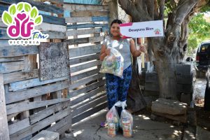 Ciudad Victoria Tamaulipas.- 19 de mayo de 2020.- En apoyo a la población vulnerable, el Sistema Municipal para el Desarrollo Integral de la Familia (DIF Victoria), que preside la señora Arcelia Flores de González, está llevando a cabo casa por casa, la entrega de insumos alimentarios de la canasta básica para los menores inscritos en el padrón del programa “Desayuna Bien”, con el objetivo de que al mantenerse las escuelas cerradas por el Covid-19, los menores sigan recibiendo una alimentación adecuada.