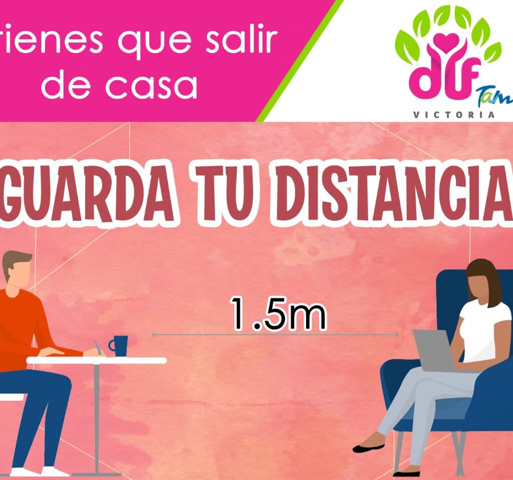 Ciudad Victoria Tamaulipas.- 04 de julio de 2020.- Recuerda que, si tienes que salir de casa, guarda mínimo 1.5 metros de distancia entre cada persona.