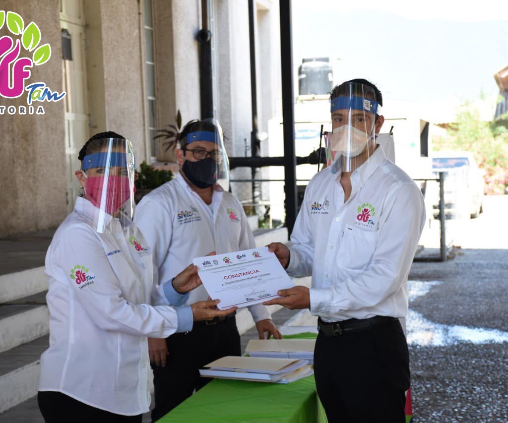 Ciudad Victoria Tamaulipas.- 17 de julio de 2020.- La señora Arcelia Flores, presidenta del Sistema DIF Victoria, llevó a cabo la entrega de constancias de fin de cursos 2019 – 2020, a cada uno de los administradores de los Centros de Desarrollo Integral de la Familia “CEDIF”.