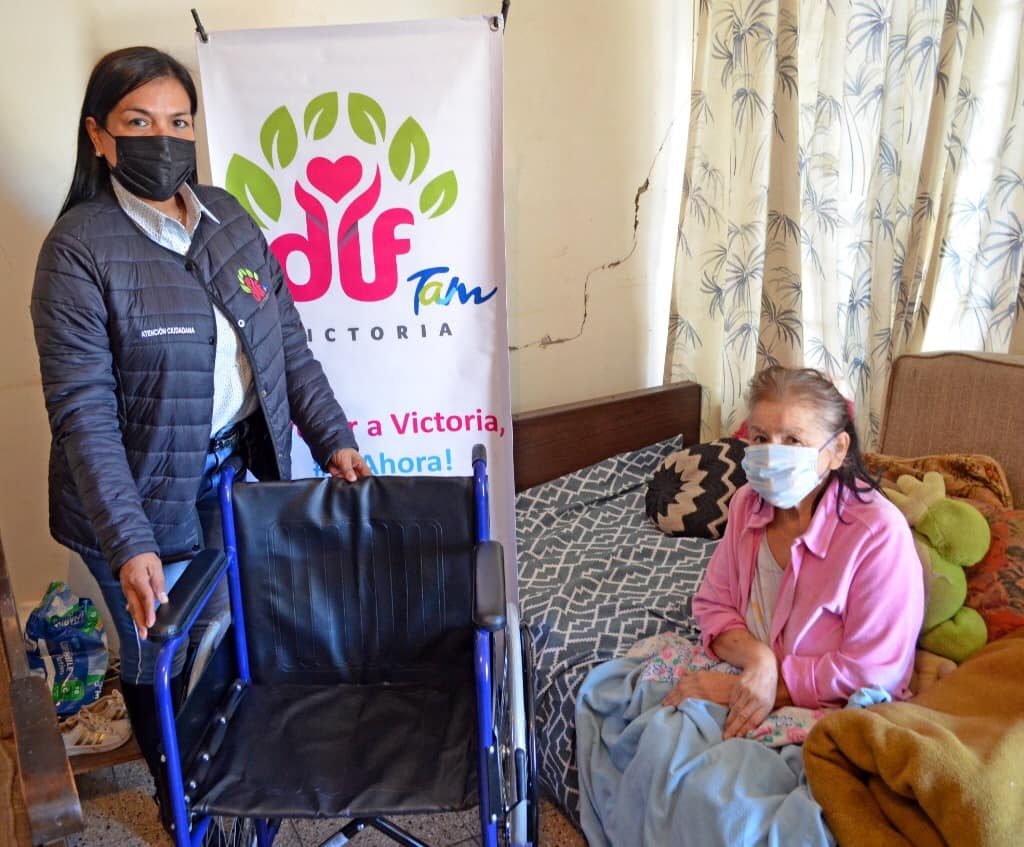 Ciudad Victoria Tamaulipas, 9 de enero de 2021.- Siguiendo la noble labor de la Alcaldesa Pilar Gómez, acudimos con el equipo #DIFVictoria al domicilio de la Sra. Ana Tamez para entregarle una silla de ruedas que había solicitado su hija, con esto ella podrá tener un mejor desplazamiento a sus terapias. #AyudarEsAhora