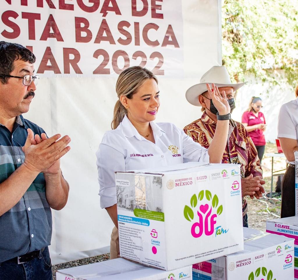 Ciudad victoria 29 de junio de 2022 – La Presidenta del Sistema DIF Victoria, Lucía Rodríguez de Gattás, se trasladó esta mañana hasta el ejido “El Olivo” en compañía de su equipo de trabajo para participar en la ceremonia de entrega de los apoyos alimenticios “Canasta Básica Familiar” en coordinación con el DIF Estatal de Tamaulipas.