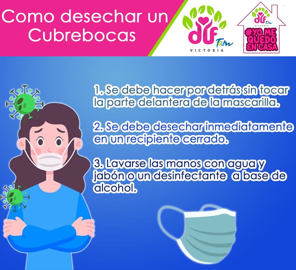 Ciudad Victoria, Tamaulipas, 19 de abril de 2020.- Recuerda seguir estos pasos para deshacerte de tu cubrebocas.