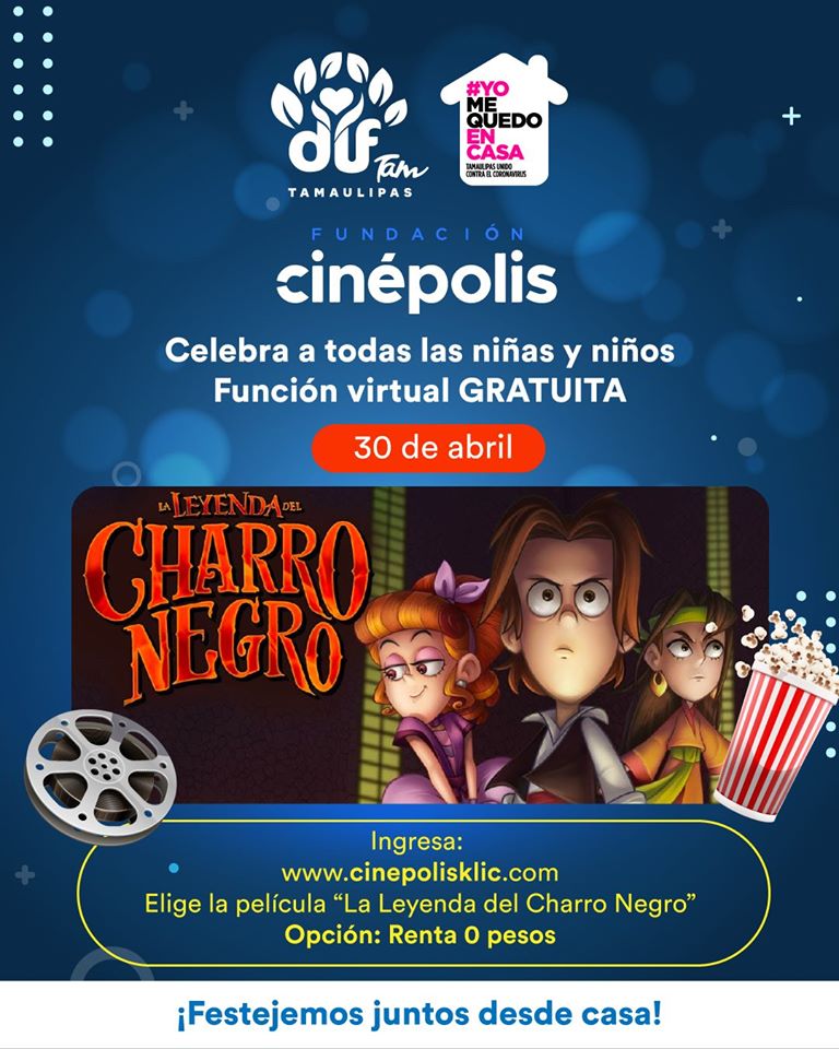 Ciudad Victoria, Tamaulipas, 29 de abril de 2020.- Este “Día del Niño”, el Sistema DIF Tamaulipas, en coordinación con Fundación Cinépolis, ofrecerá durante todo el día la función virtual gratuita de la…