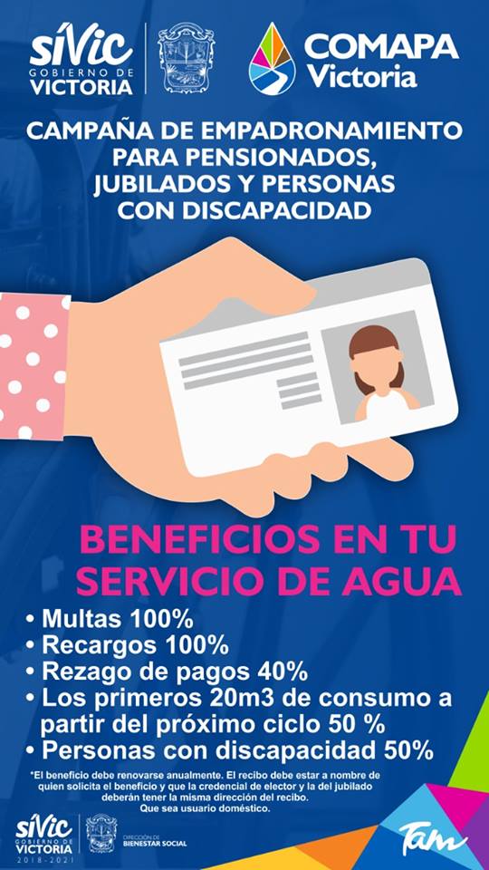 Ciudad Victoria, Tamps., 15 de enero de 2019.- DIF Victoria a través del Gobierno Municipal de Victoria, Gobierno del Estado de Tamaulipas y Comapa Victoria, hace la invitación a la Campaña de Empadronamiento, dirigida a…