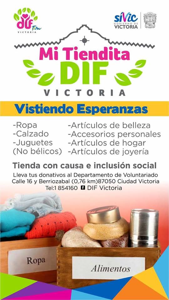 Ciudad Victoria, Tamps., 24 de enero de 2019.- El Sistema Municipal para el Desarrollo Integral de la Familia (DIF Victoria), que preside la Señora Arcelia Flores de González, pone a disposición del…