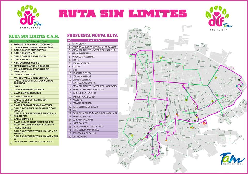 Ciudad Victoria, Tamps., 09 de enero de 2019.- El Sistema DIF Victoria a través del Programa “Sin Límites”, pone a tu alcance la ruta “Sin Límites Interejidal”. Es un servicio gratuito…