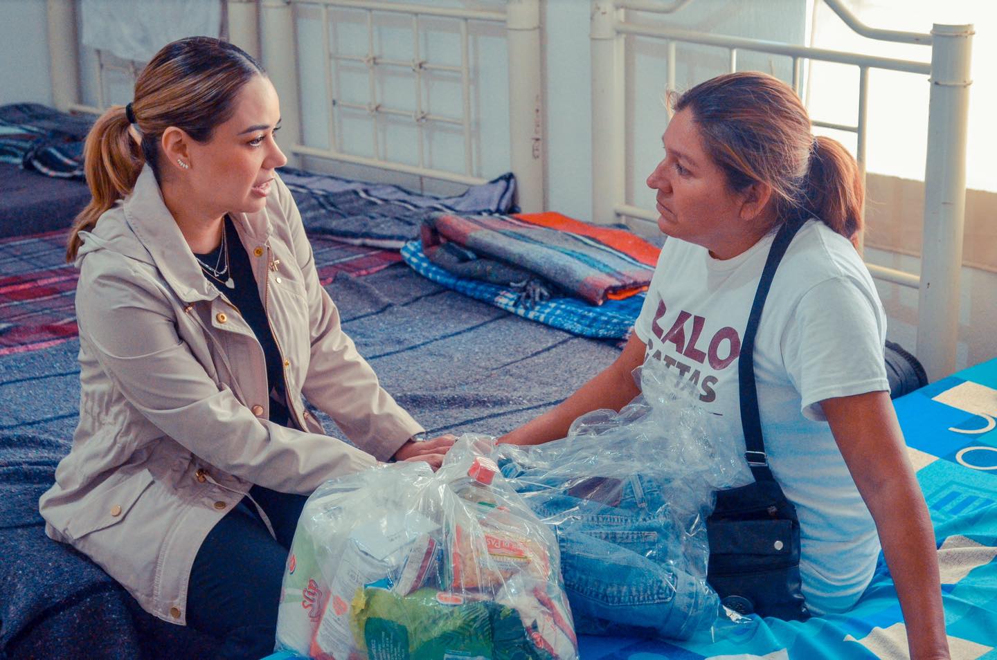 Visita Lucy de Gattás a familias refugiadas en el albergue del CEDIF 1.
